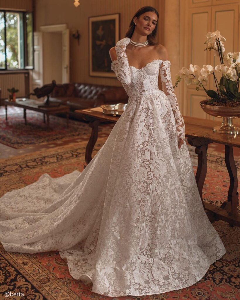 Lace has always held a place in bridal fashion, but in 2026, it’s evolving in a softer, more intricate direction. Instead of heavy or overly traditional patterns, lace is appearing lighter, more dimensional, and thoughtfully placed.
