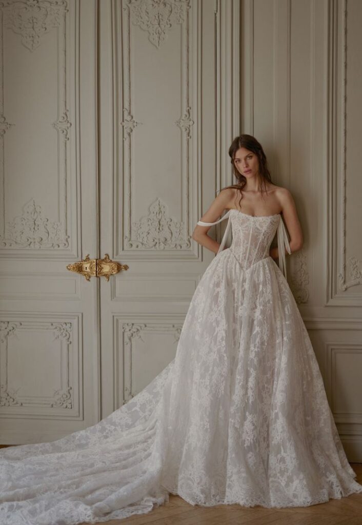 Another defining element is balance — structure without stiffness, and softness without losing shape. Corsetry, boning, and internal structure are being used more intentionally to support the gown while maintaining comfort.