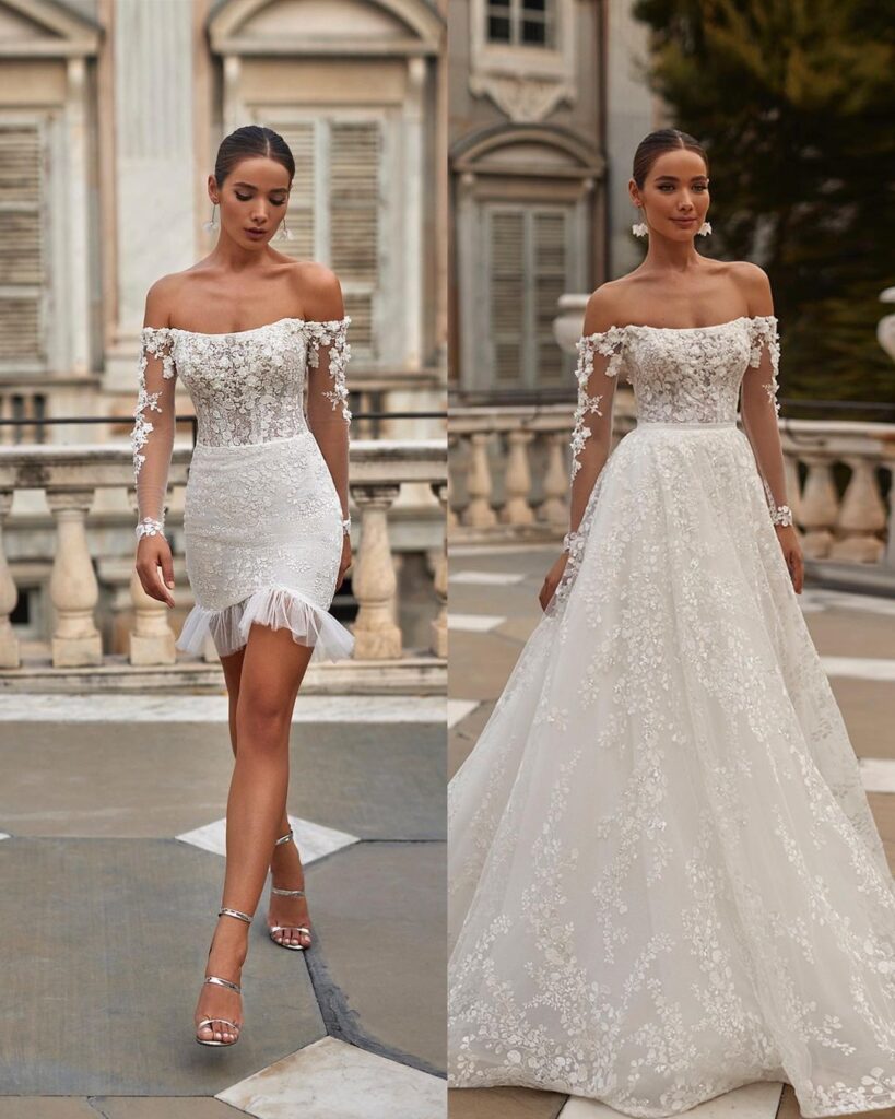 This trend supports brides who want a ceremonial look for the aisle and a lighter, more relaxed feel for the reception. It also reflects the modern bride’s desire for practicality without sacrificing style.