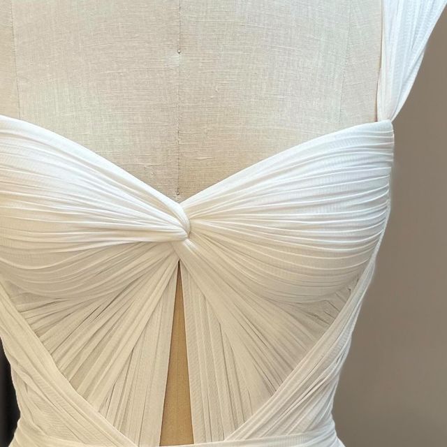 Beyond silhouette, 2026 wedding dresses are paying closer attention to how a gown frames the upper body. Necklines and bodice details are becoming more intentional, designed to highlight natural shape while maintaining a soft, romantic feel.