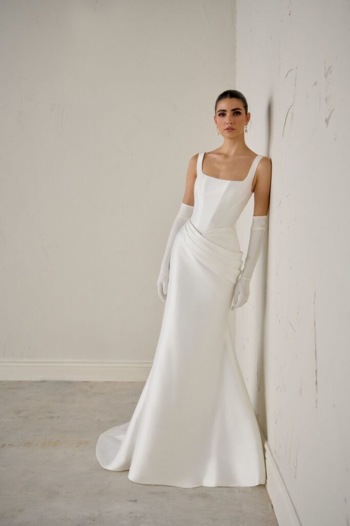 Minimalist wedding dresses continue to hold strong, but with added depth and purpose. These gowns aren’t about simplicity for simplicity’s sake, they’re about craftsmanship, fit, and quiet confidence.
